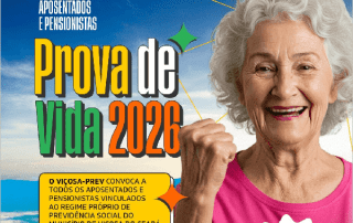 O VIÇOSA-PREV, convoca a todos os aposentados e pensionistas vinculados ao Regime Próprio de Previdência Social do Município de Viçosa do Ceará para realização da Prova de Vida no período de 08 de janeiro de 2025 a 31 de dezembro de 2025. A Prova de Vida poderá ser realizada de [...]
